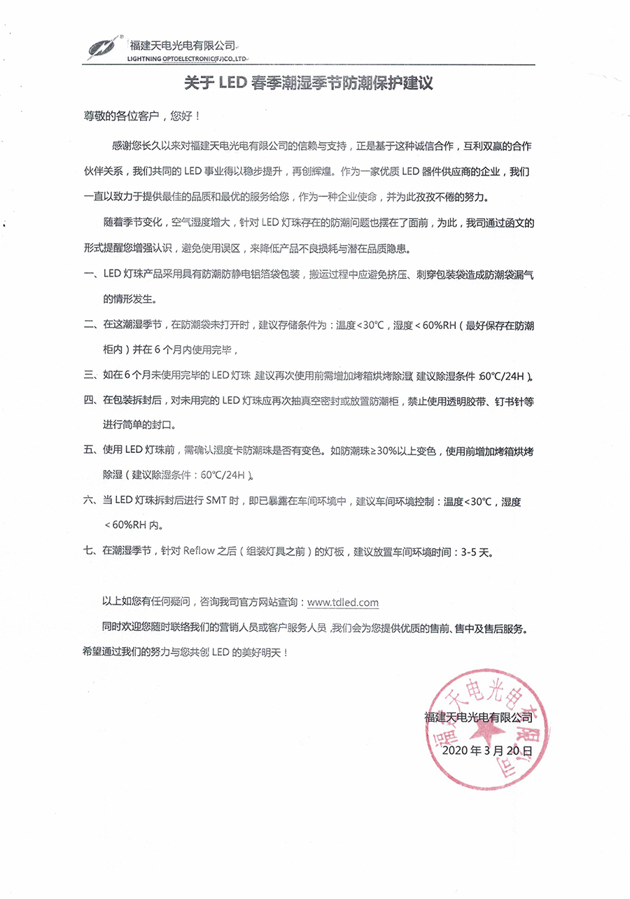 關(guān)于LED春季潮濕季節(jié)防潮保護(hù)建議