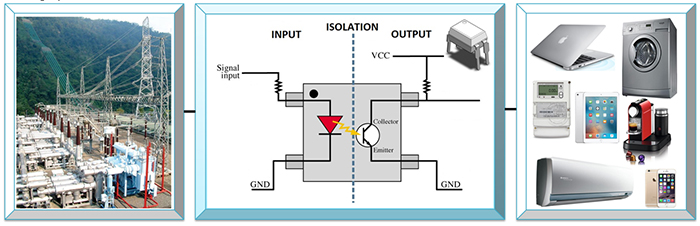 主要使用三極管光耦,于電源系統(tǒng)中提供隔離及回授訊號傳遞功能。