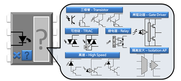 光耦主要可以用兩種類別來做分類(1)封裝類別(2)輸出類別,下面這張圖表可以在封裝類別上面作個簡單的理解: