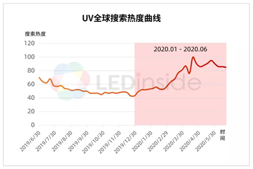 根據(jù)LEDinside 統(tǒng)計(jì),相較于今年一月,關(guān)于UV相關(guān)的全球網(wǎng)路搜索熱度,也明顯增加了一倍!