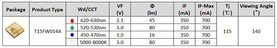 產(chǎn)品特性:• 高耐熱EMC封裝• 緊湊的封裝尺寸規(guī)格• 低熱阻• 耐高電流驅(qū)動